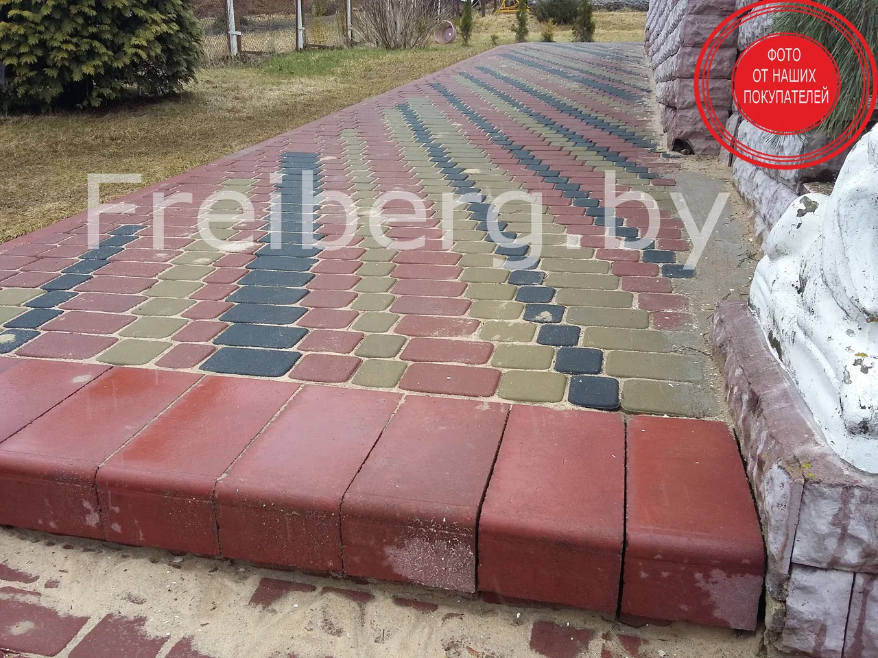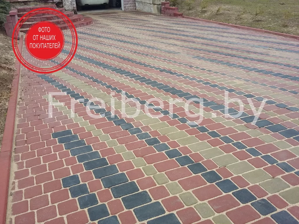 Тротуарная плитка Старый город состоит из трех элементов разных размеров (183*123*60, 123*123*60, 123*93*60) что позволяет сделать территорию более красочной и применить свою фантазию при укладке используя несколько цветов.