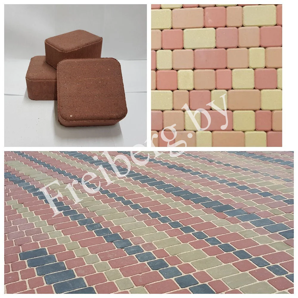 У нас можно приобрести тротуарную плитку как серую, так и в цвете. Цветная тротуарная плитка и борта на нашем предприятии производиться только методом полного окрашивания. Данный метод позволяет равномерно окрасить изделие полностью.